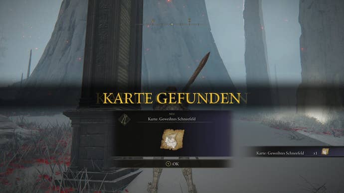 Location: The Sacred Snowfield can only be reached with both halves of the Secret Halig Tree Medallion . Simply ride north in the wintry area and you’ll come across the monolith with the map.