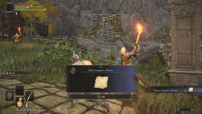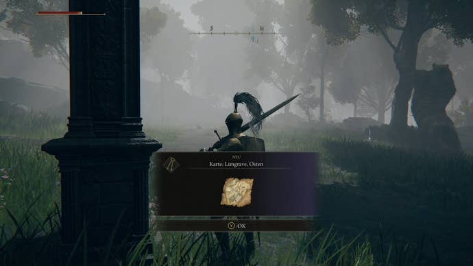 Location: On a road to the east in East Limgrave. Very cute: A bear is rubbing itself against a tree nearby. He probably has his reasons for doing so. Tip: If you want to get to the map without much searching, go to Murky River Cave , defeat Patches there , spare him, talk to him, and after a rest, open his chest. The teleporter trap inside will drop you off almost directly next to the map.