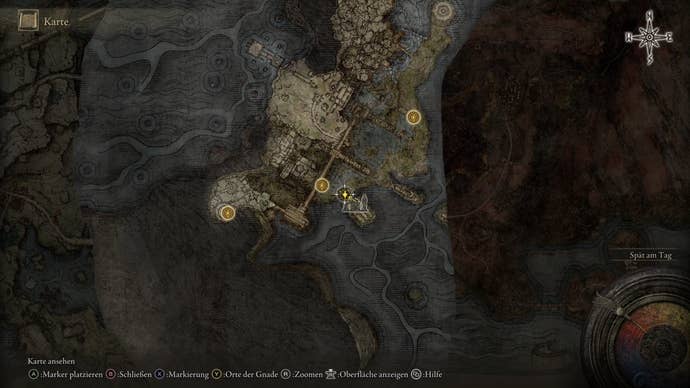 Location: Leave the Vulkan House in Gelmir through the normal exit and follow the path behind it – not far – to the marked spot. The stele containing the Gelmir map is guarded by a giant spider hand, so be careful when collecting it.