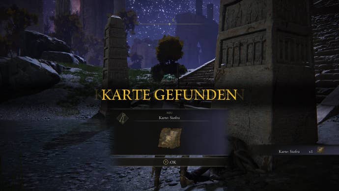 Location: In the underground area of Siofra . To find it, take the elevator down the Well of Siofra (East Limgrave) and follow the course of the area. After another elevator ride, you’ll arrive at the Place of Mercy (banks of the Siofra River). The map is located opposite, on the stele.