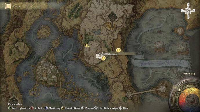 Location: Uhl Palace Ruins . From the well floor of the Ainsel in East Liurnia, descend through an ant cave to the palace ruins. There, you’ll meet a nomadic merchant by a campfire. The map is next to a corpse.